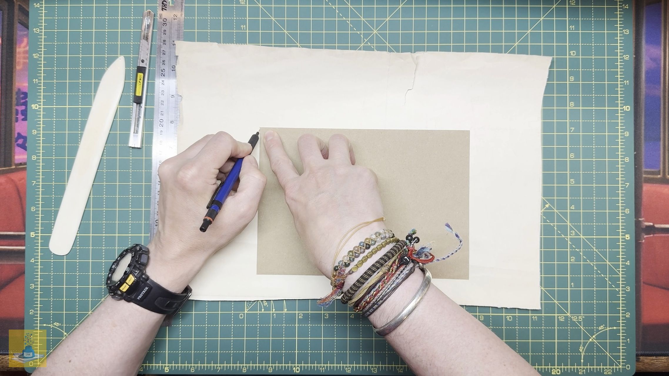 - Lay your A5 card on top of the paper and mark around it, leaving at least a rules width margin or more. Mark the corners of the card on the paper to help you line things up later.