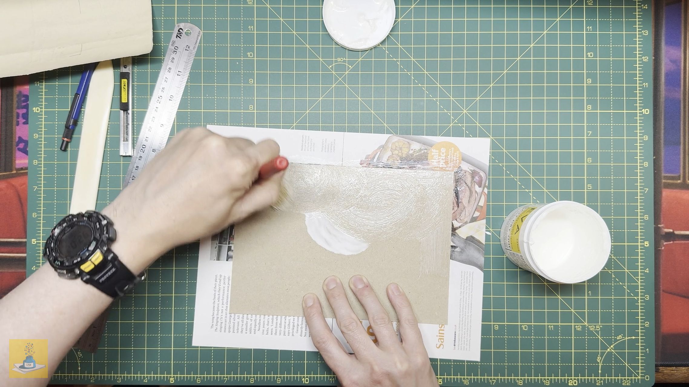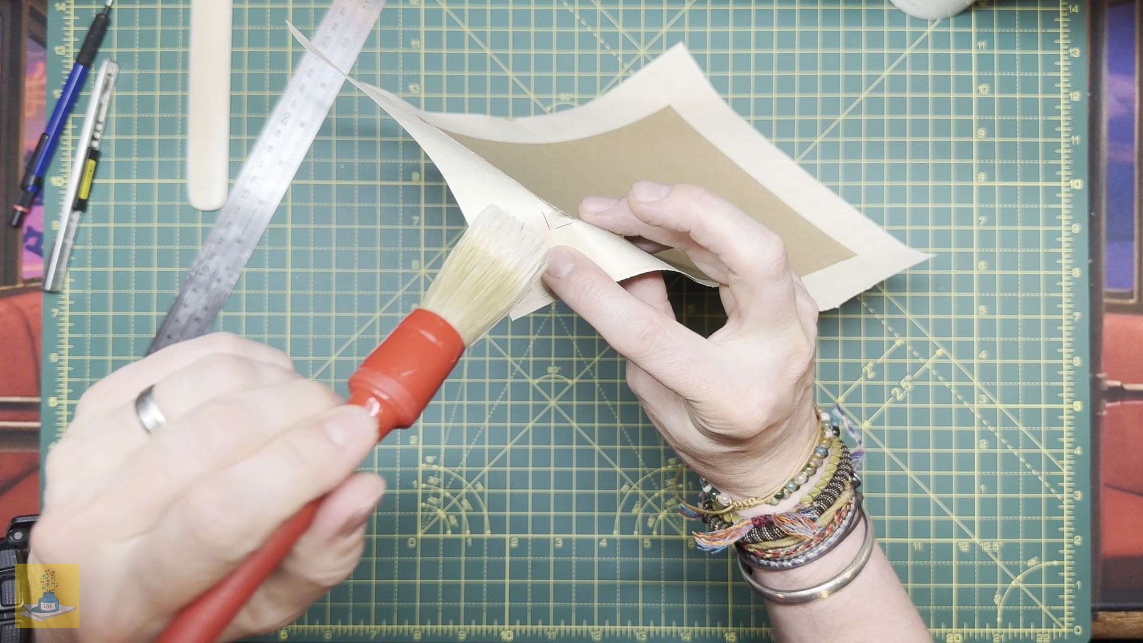 - Brush an even coat of glue onto the card, making sure to get the edges. I always make sure the darker side of my Kraft card faces inward for a nicer aesthetic.