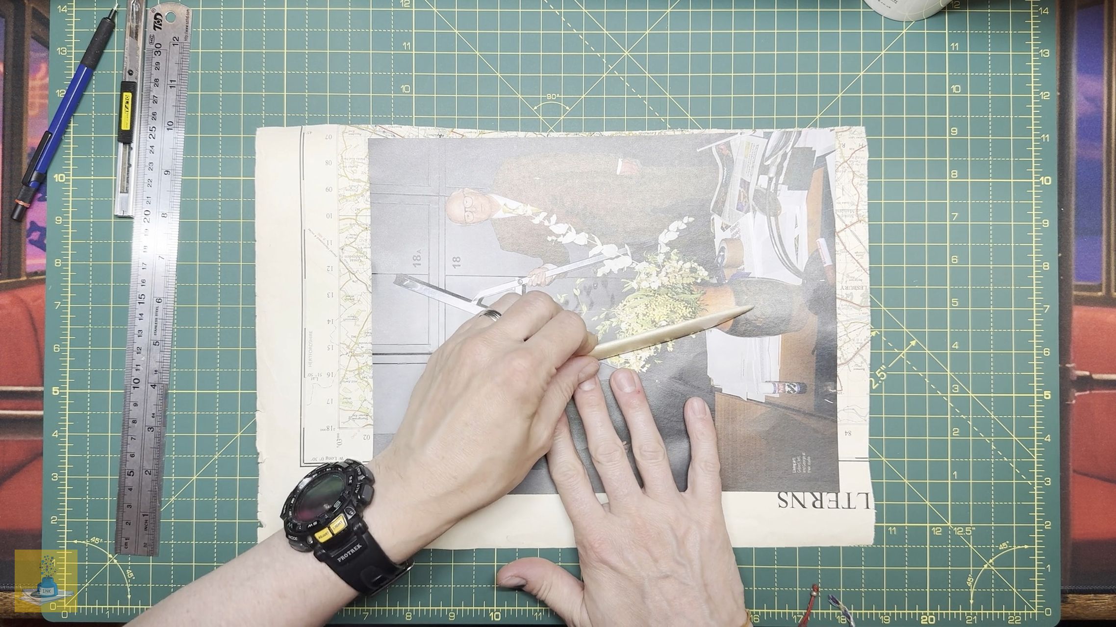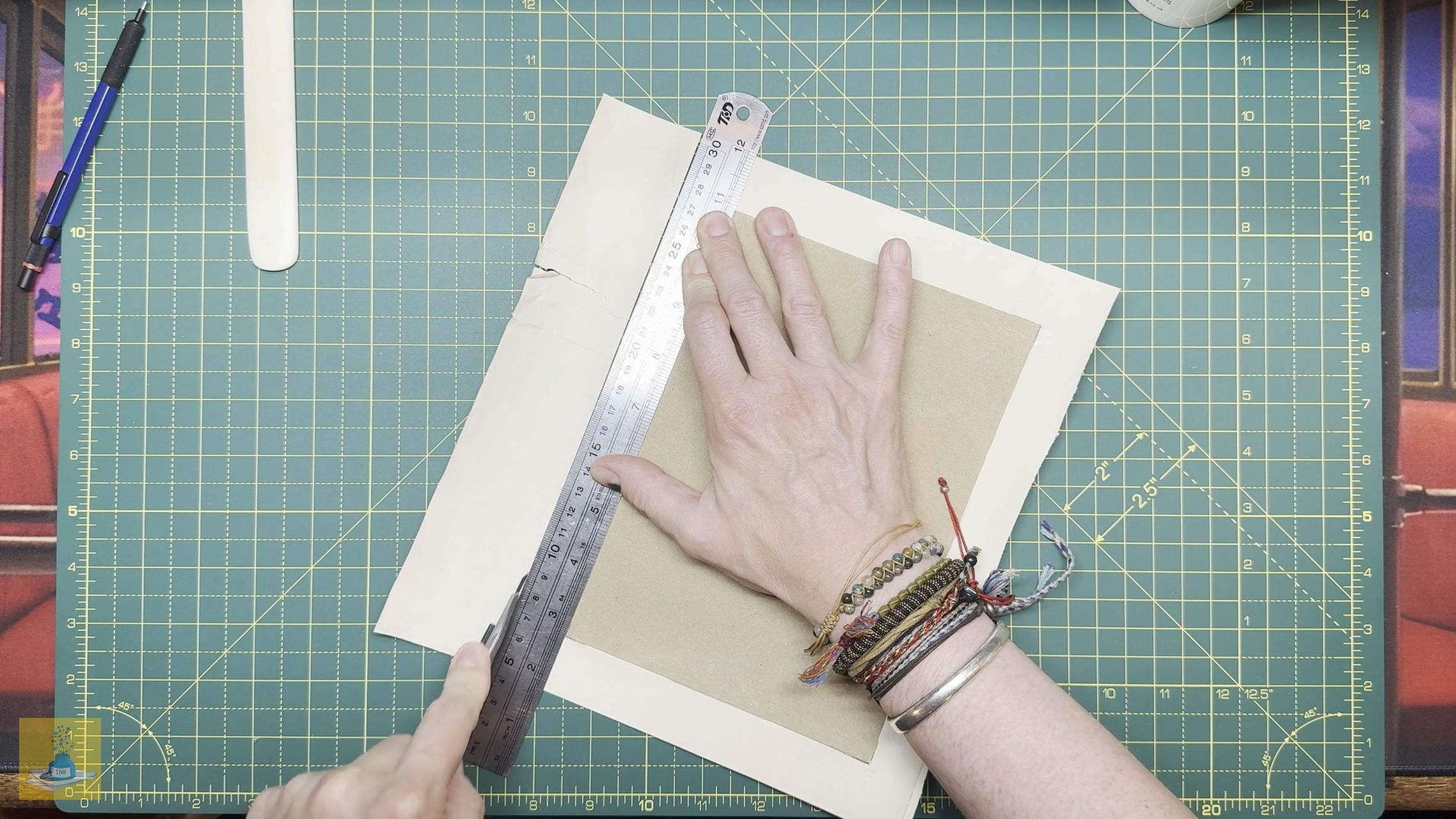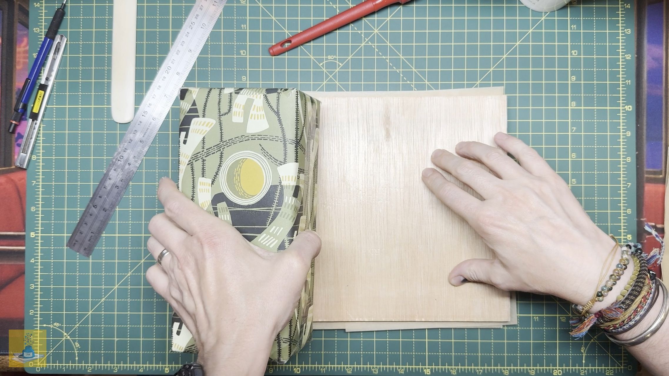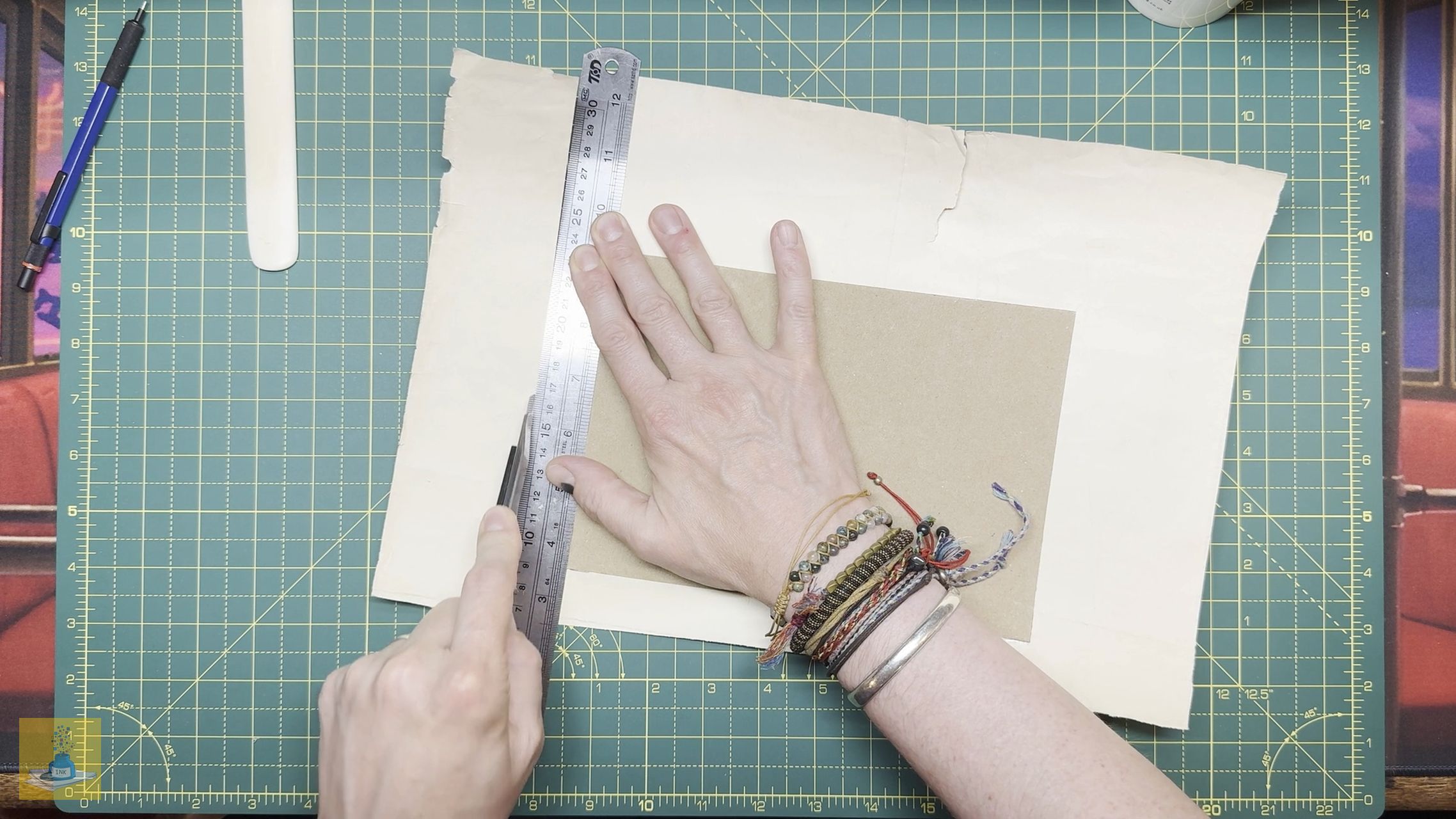 - When the cover is completely dry, use a steel ruler and a sharp craft knife to trim the excess paper from all four sides. It’s important to do this only after the glue is dry to prevent the paper from tearing.
