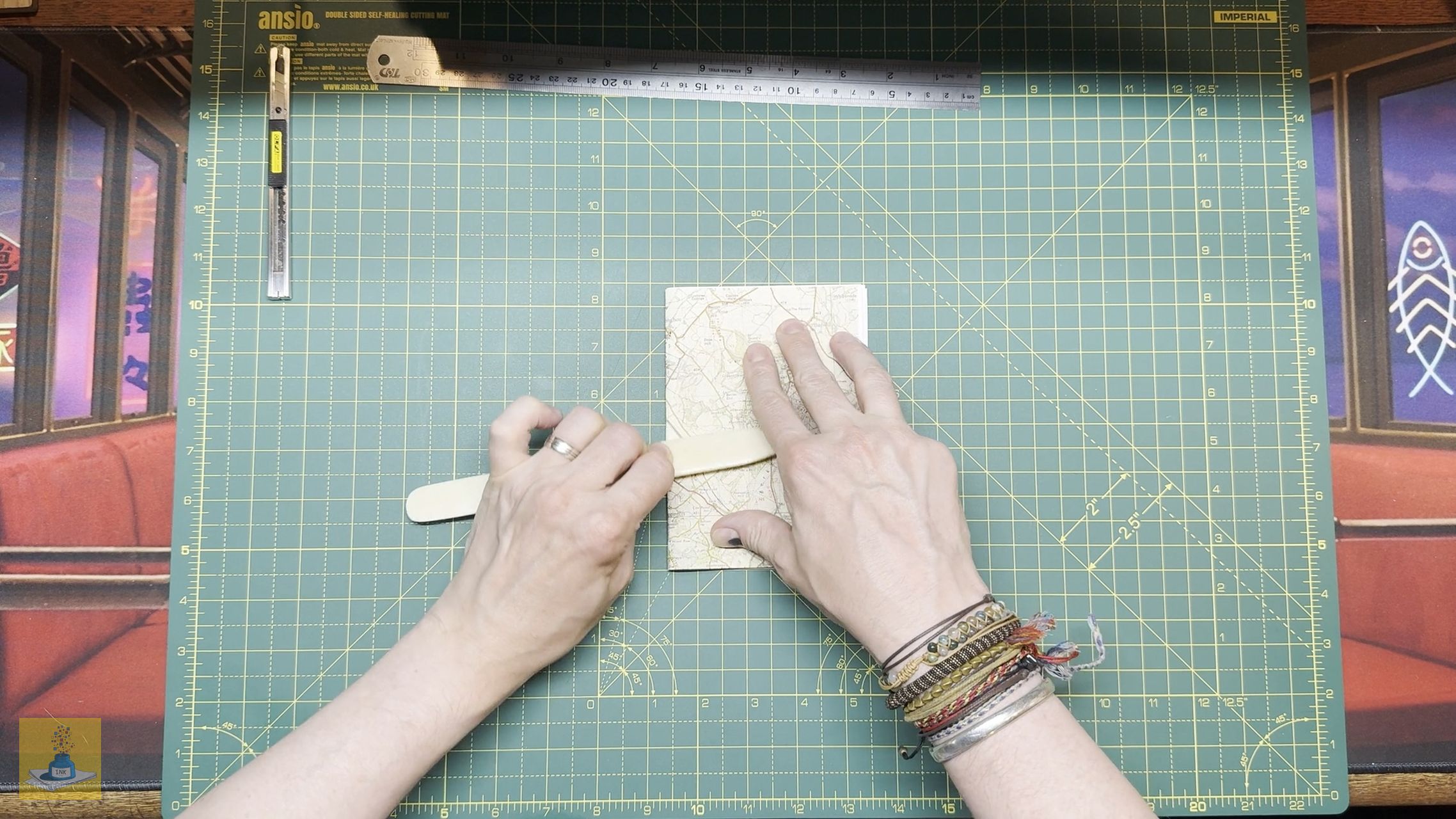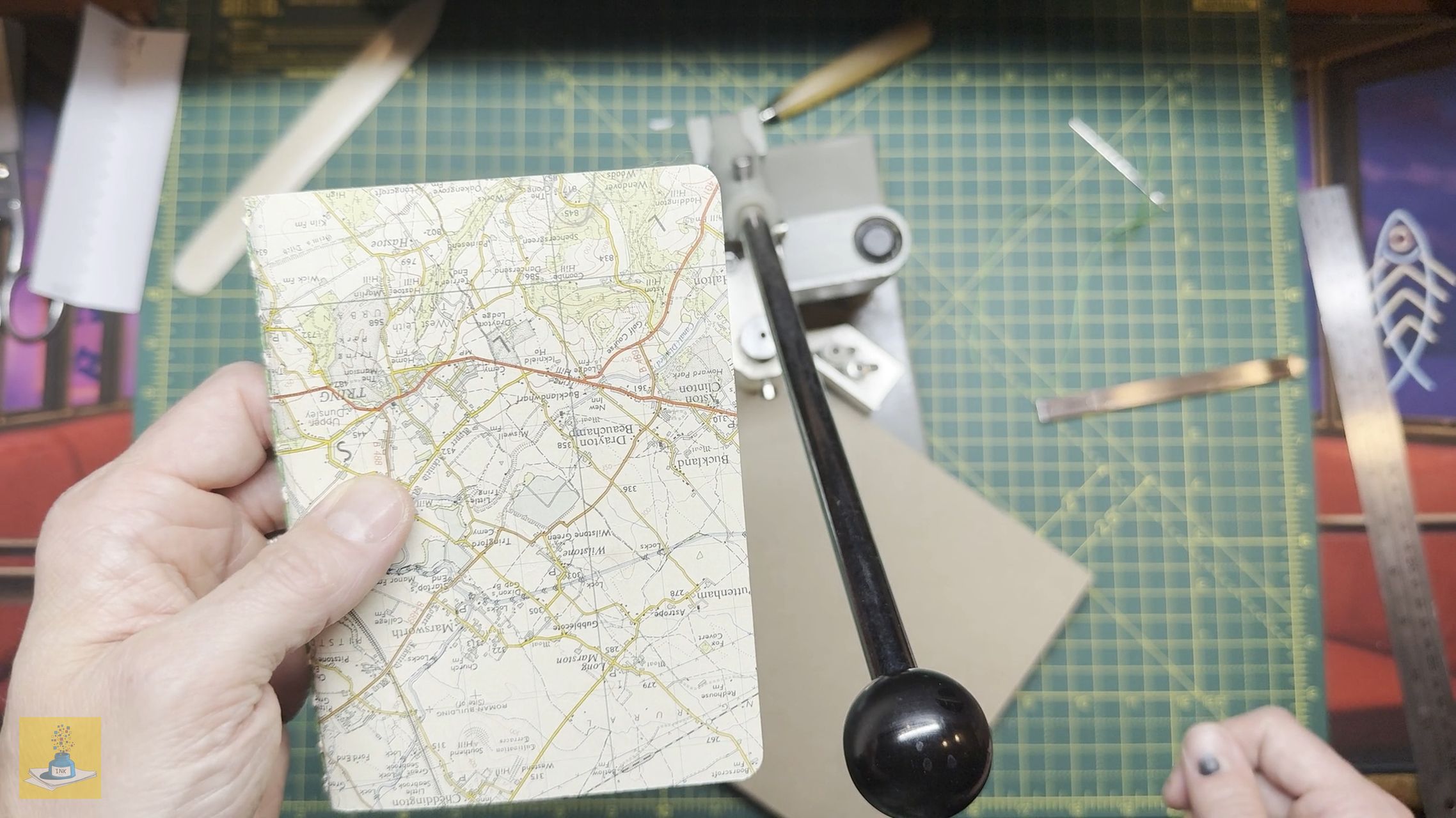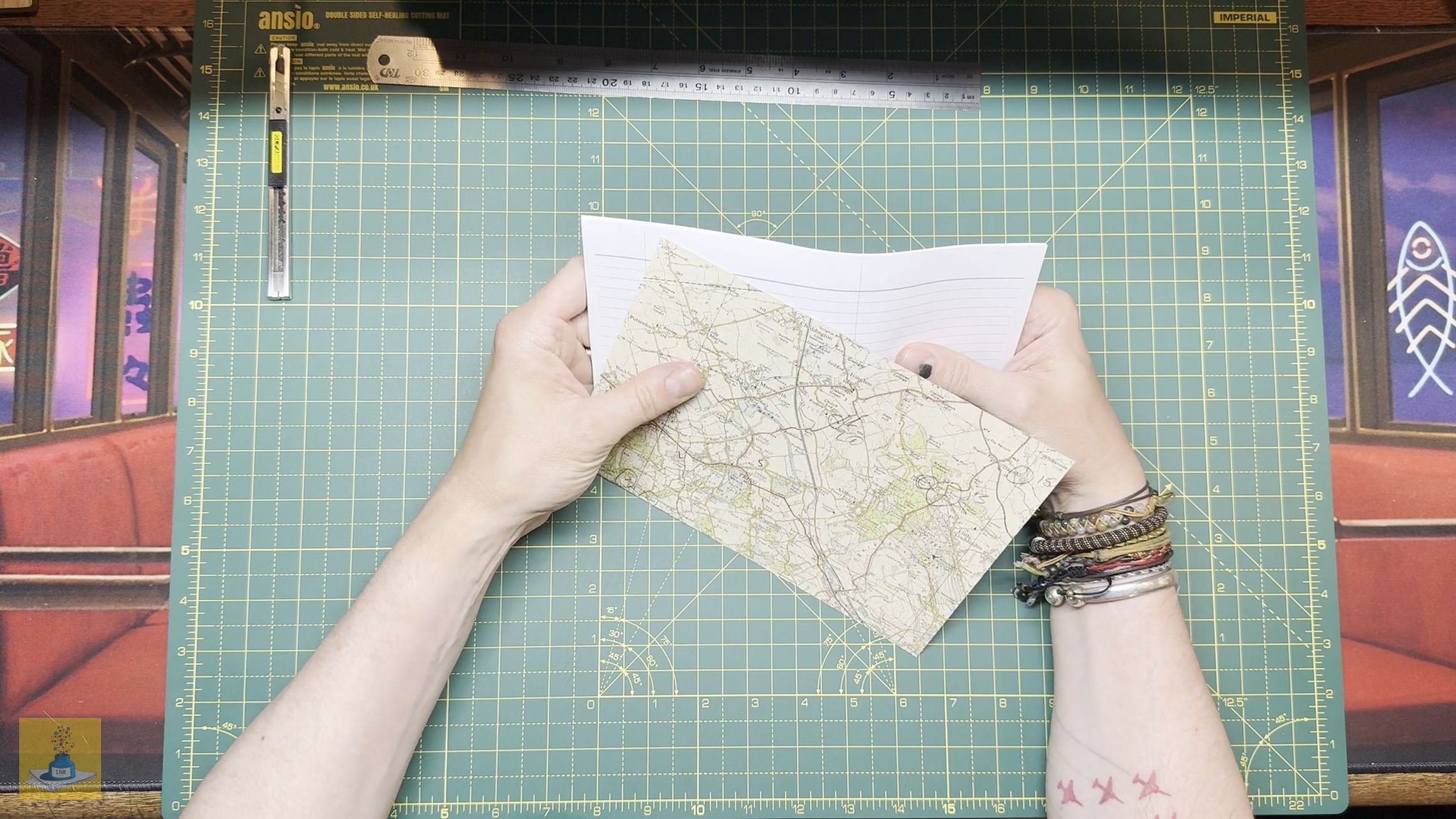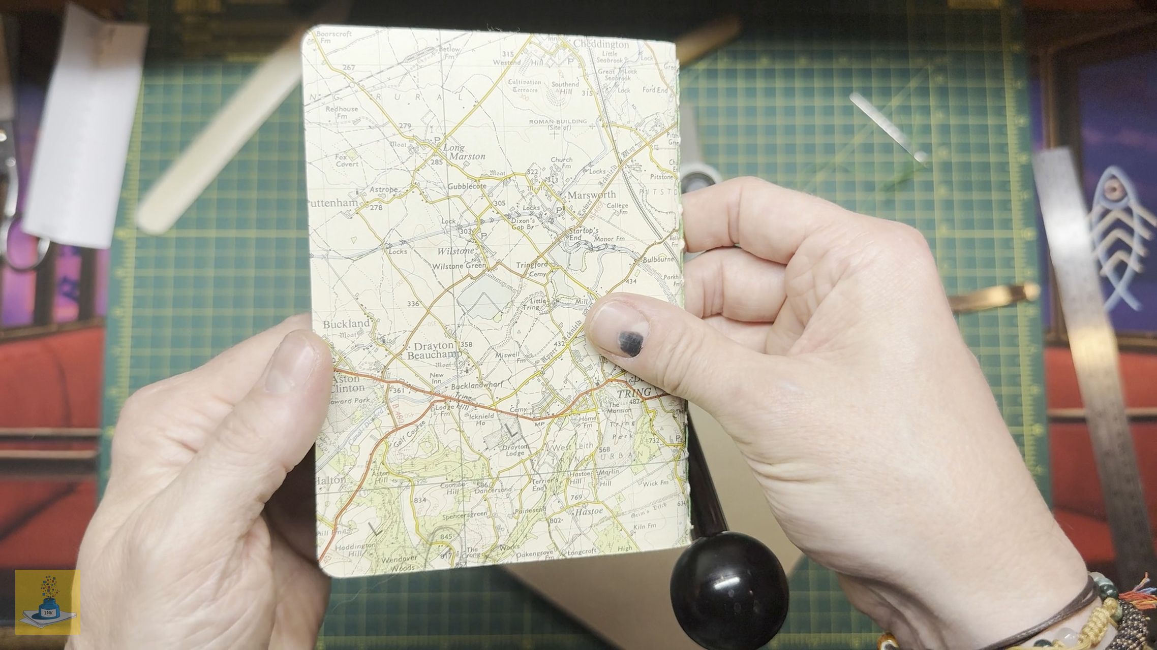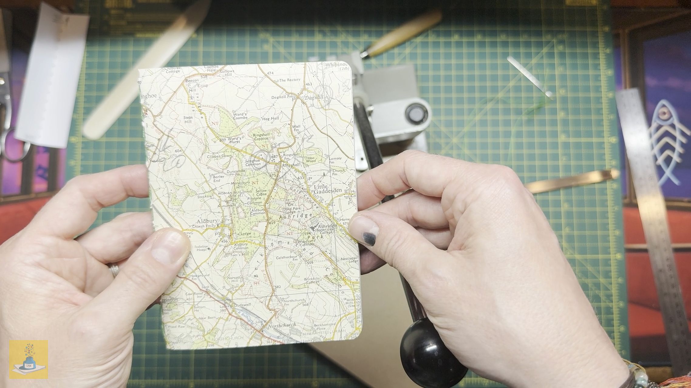 - I enjoy adding patterned paper, like the old ordnance maps from the 1950s that I have, to the outside of the cover. This step is completely optional, though!