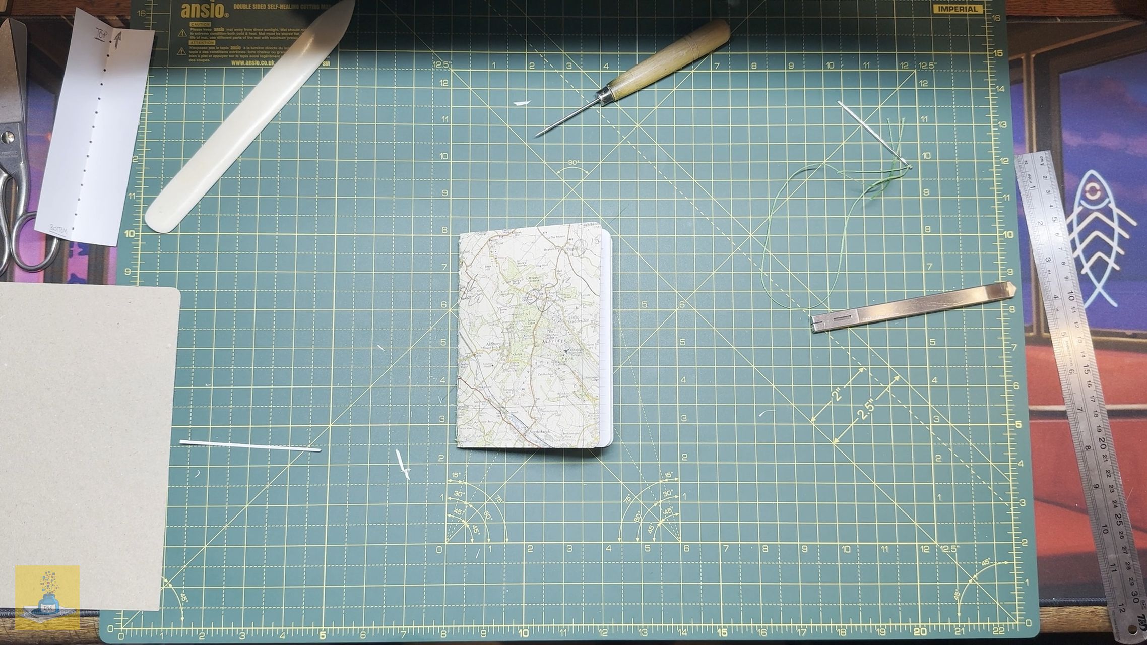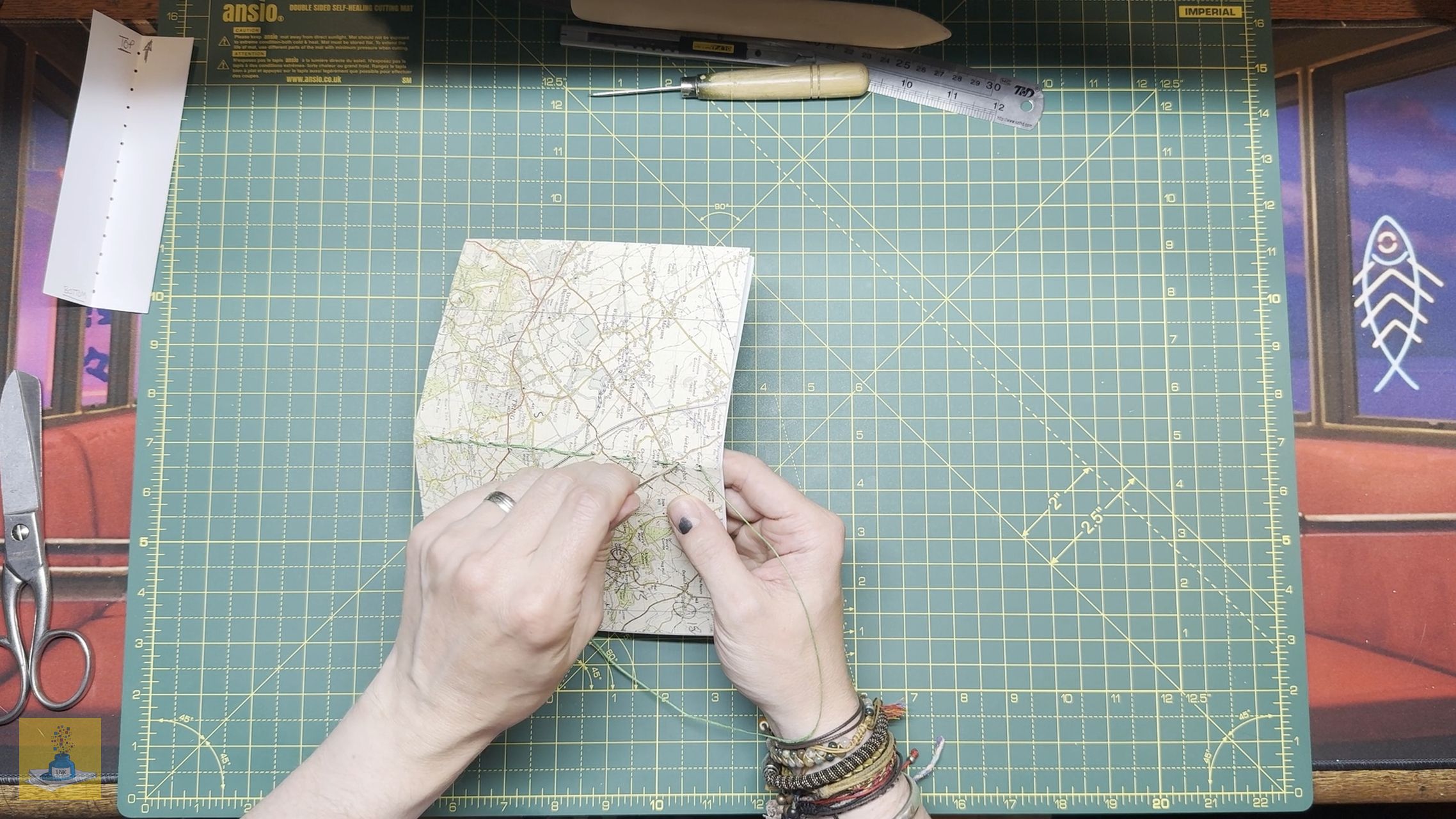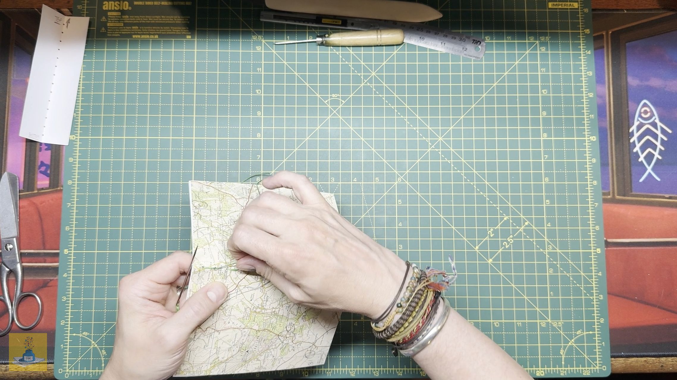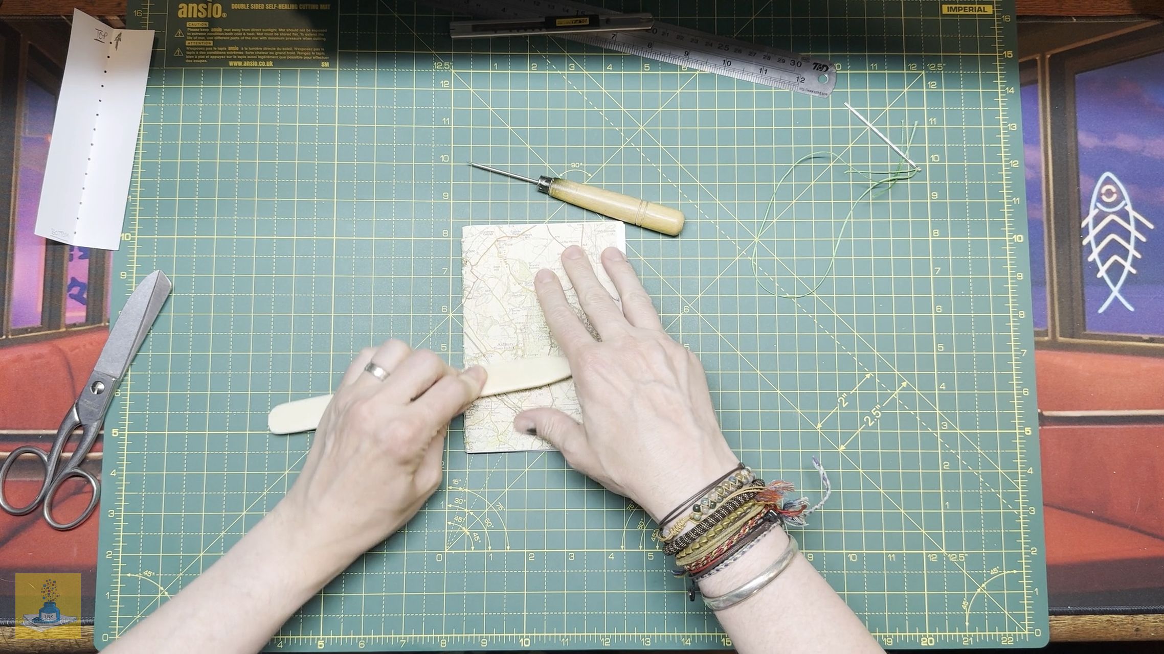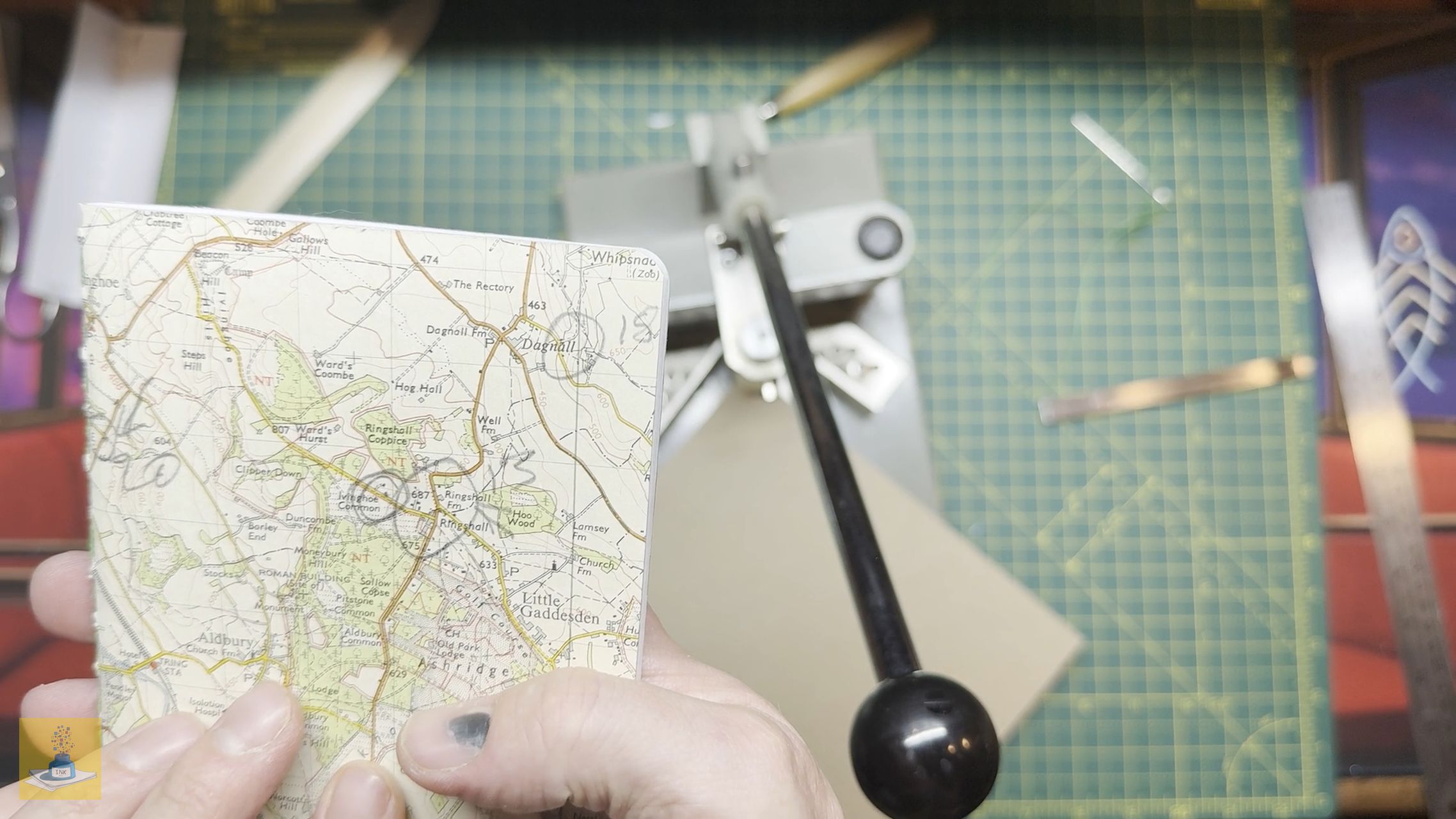 - I enjoy adding patterned paper, like the old ordnance maps from the 1950s that I have, to the outside of the cover. This step is completely optional, though!