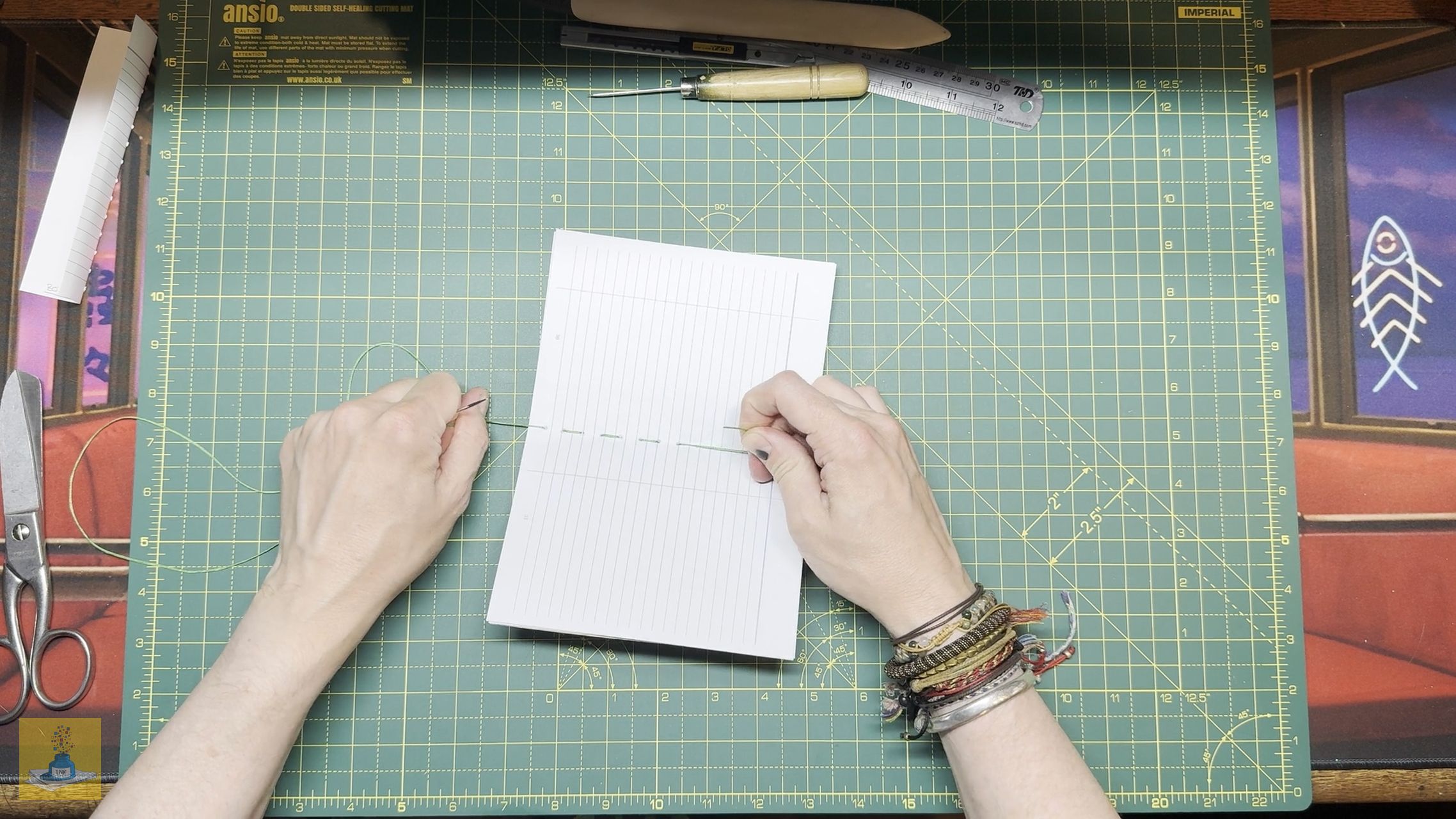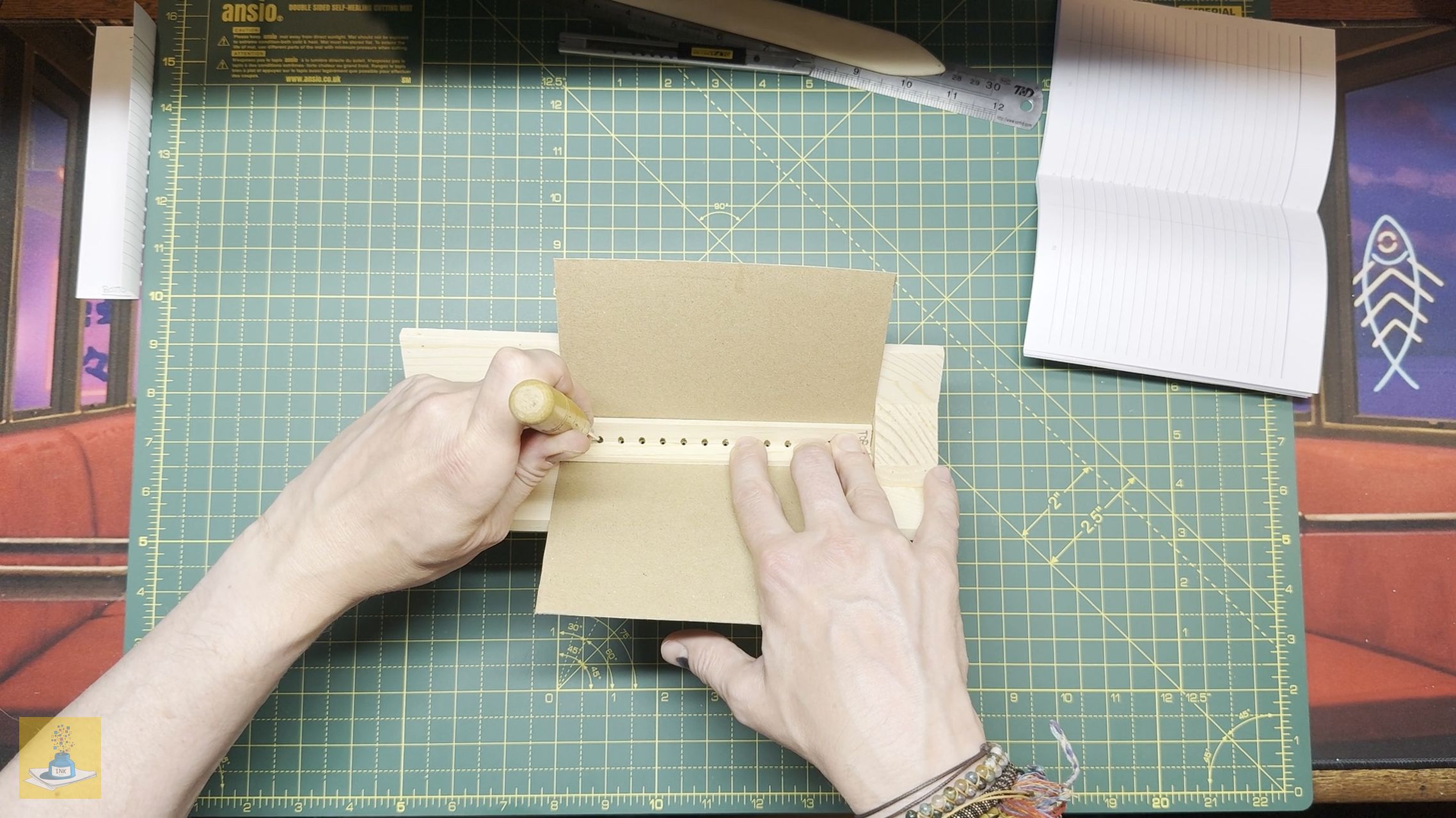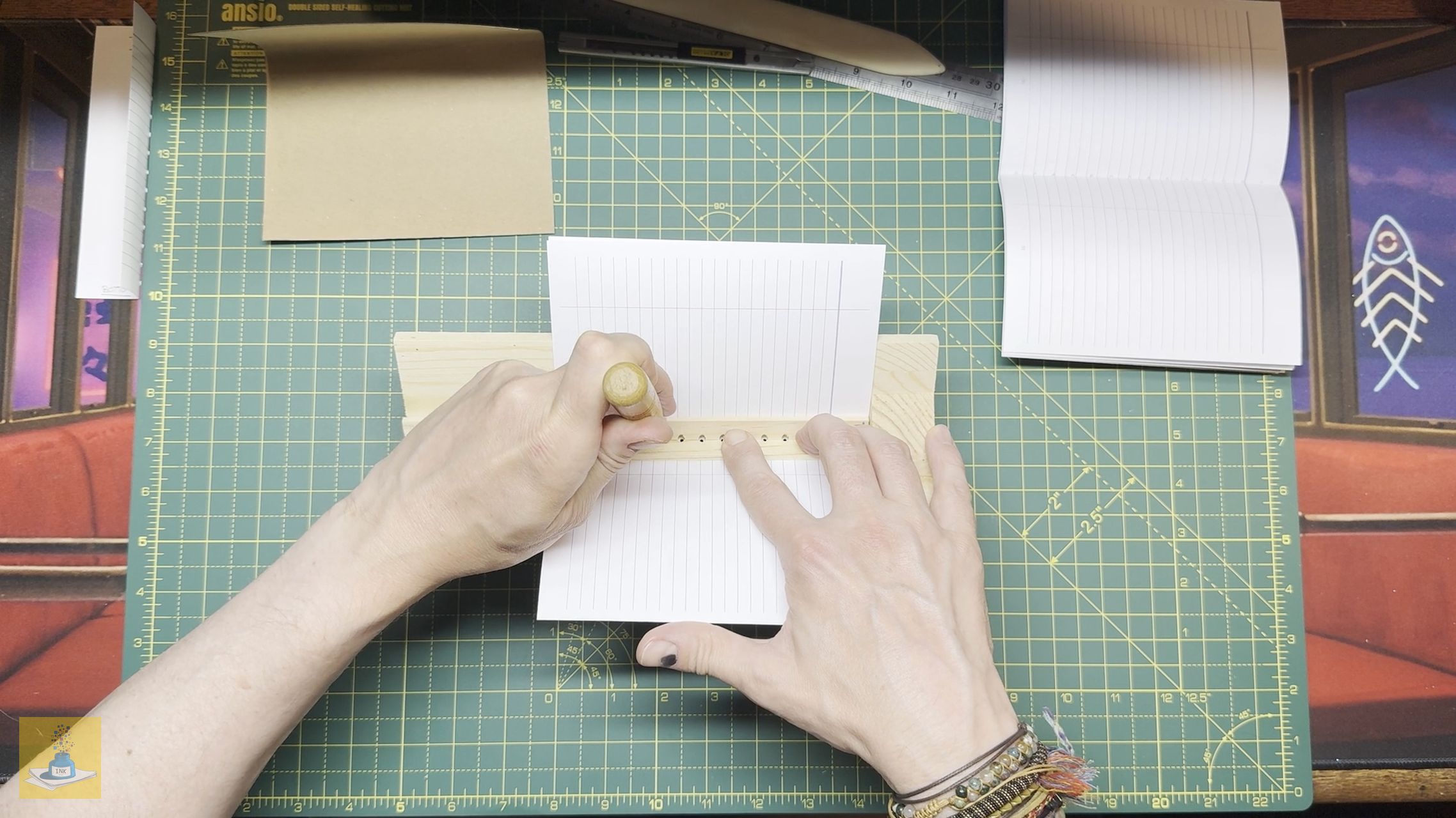 - Next, it’s time to punch holes in the pages spine for sewing.