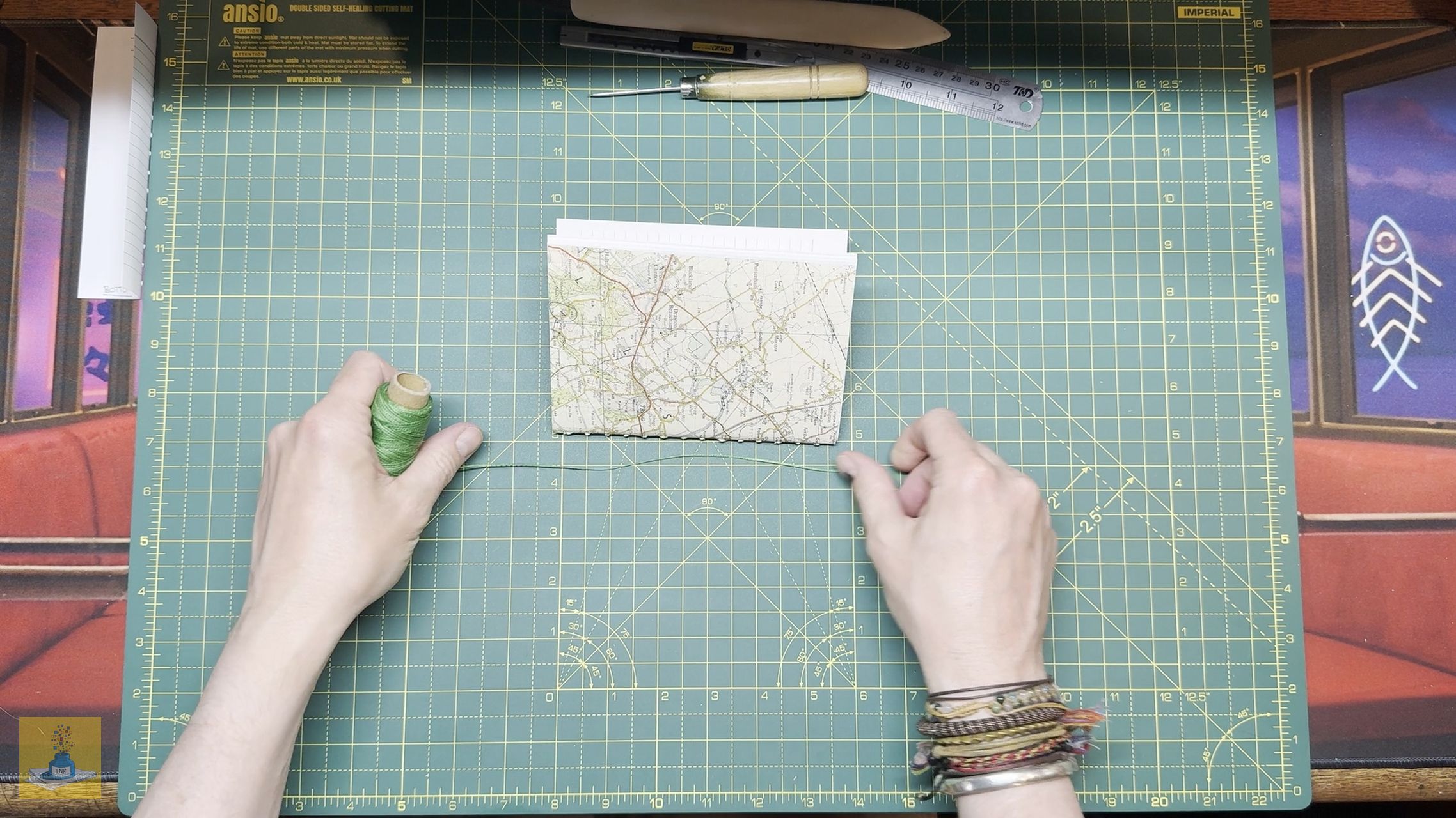 - Measure about 3-4 spine lengths of thread; this will be more than enough. If your thread isn’t waxed, you should wax it with beeswax or a candle. This helps the thread glide through the holes.