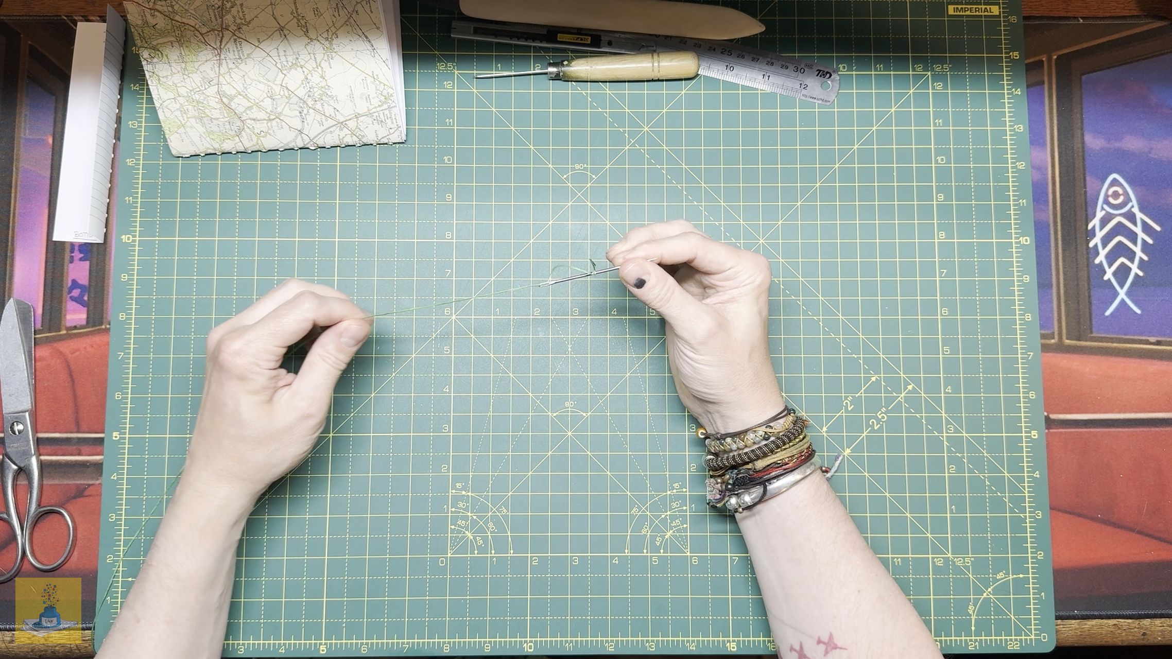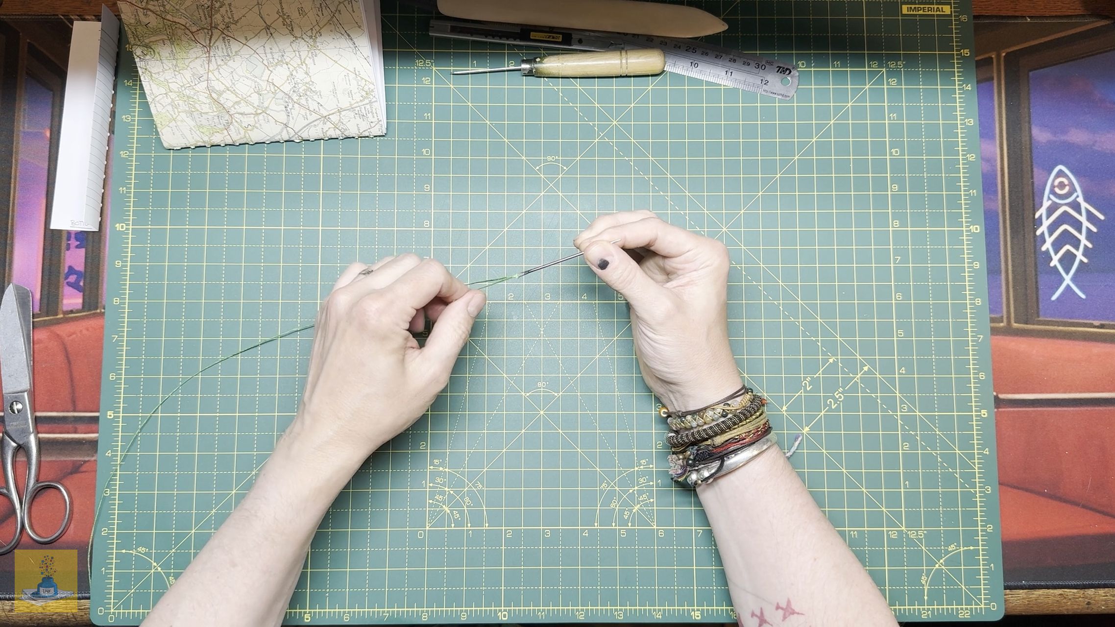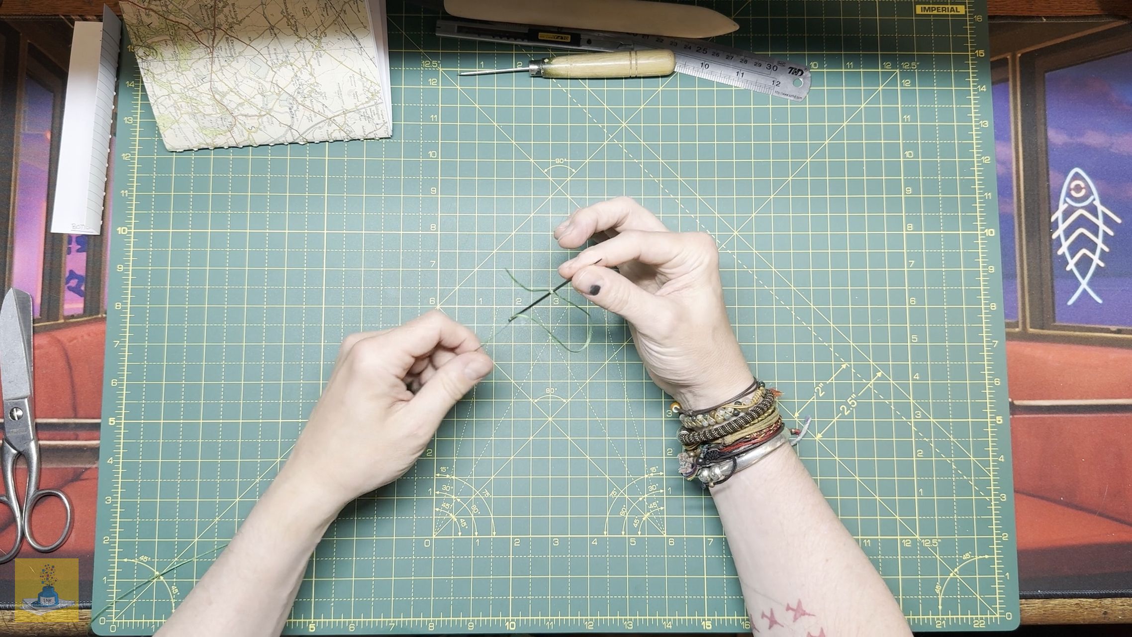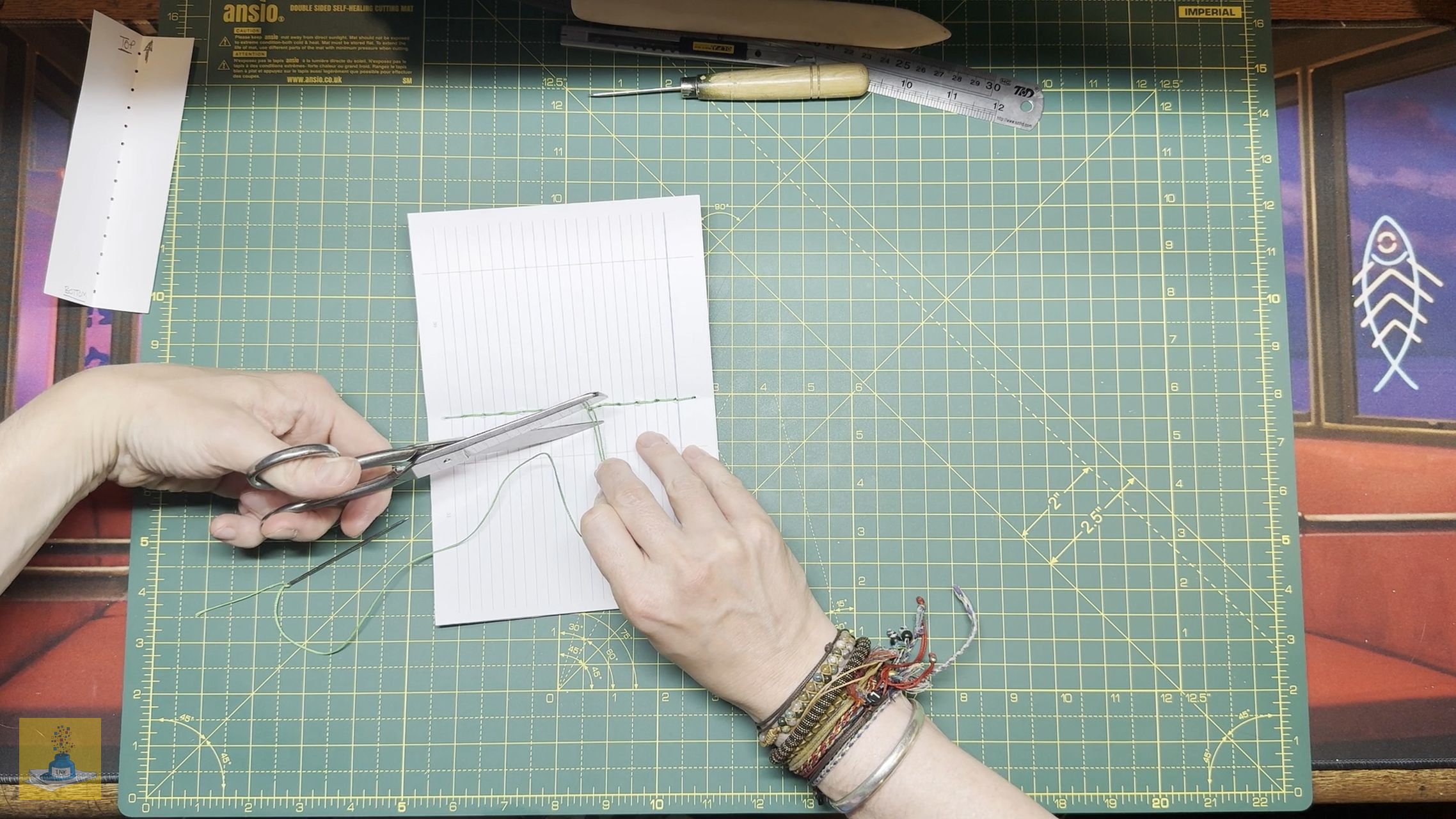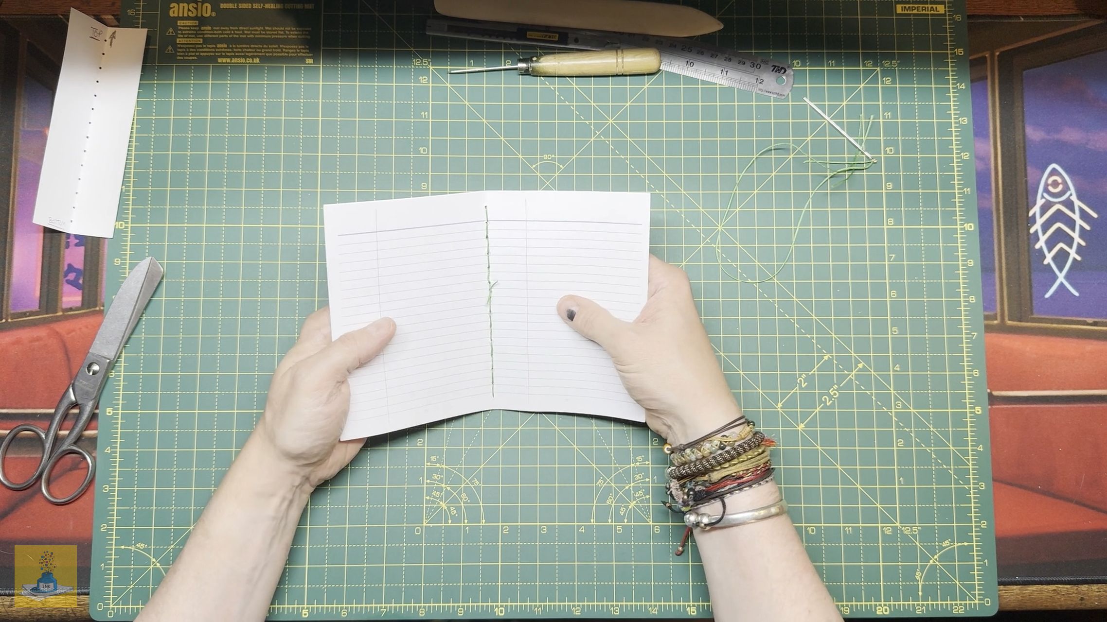 - If you don’t have a punching cradle, you can use the template I’ve created, aligning to the top edge of the paper on the spine. With the paper slightly closed and the spine on the edge of a table, use your awl or needle to poke holes from the inside.