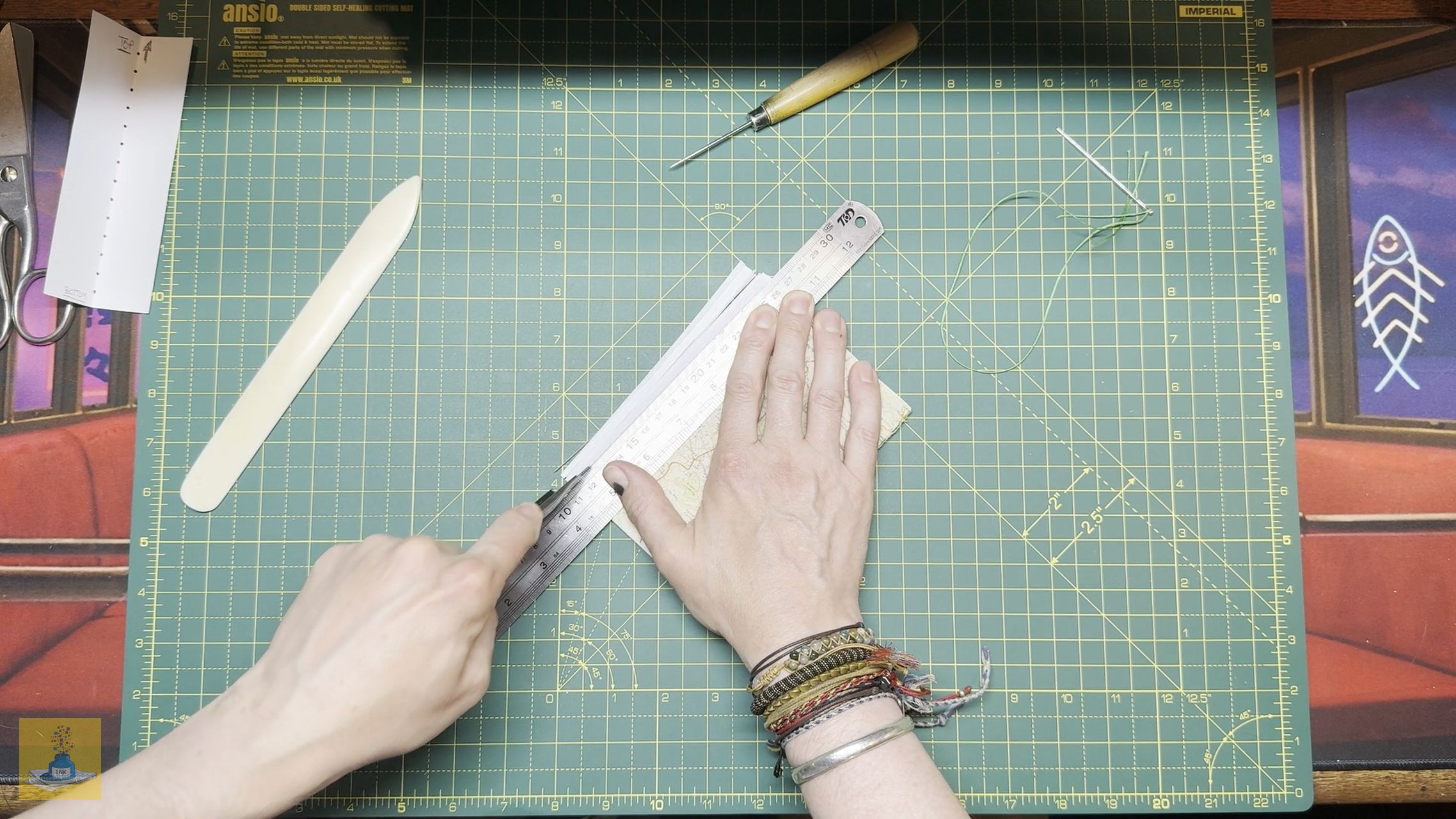 Once you’ve finished sewing, you’ll have a notebook with uneven edges. You can trim and straighten these using a guillotine, or with a steel ruler and a sharp craft knife.