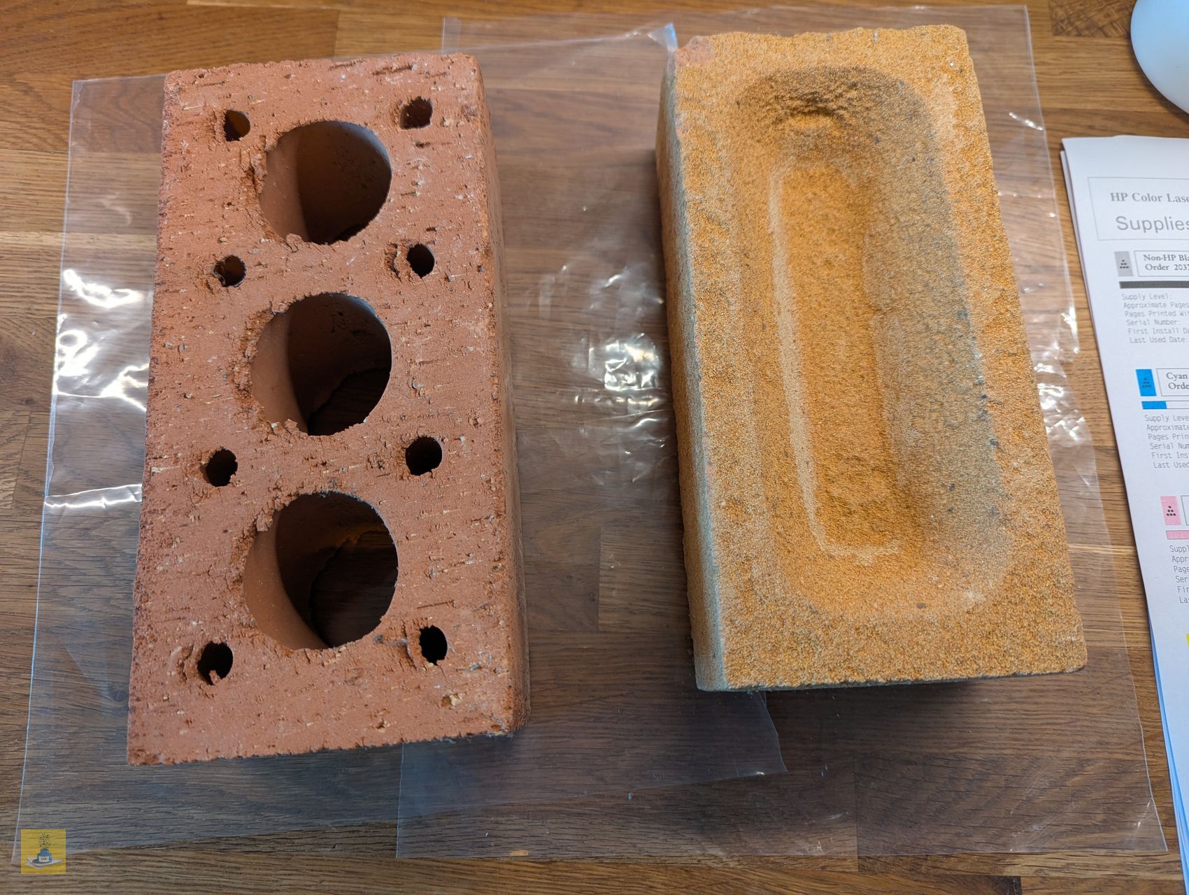 Before getting to the wrapping stage, the bricks needed a good brushing off to eliminate any loose dust and give them a general clean.
