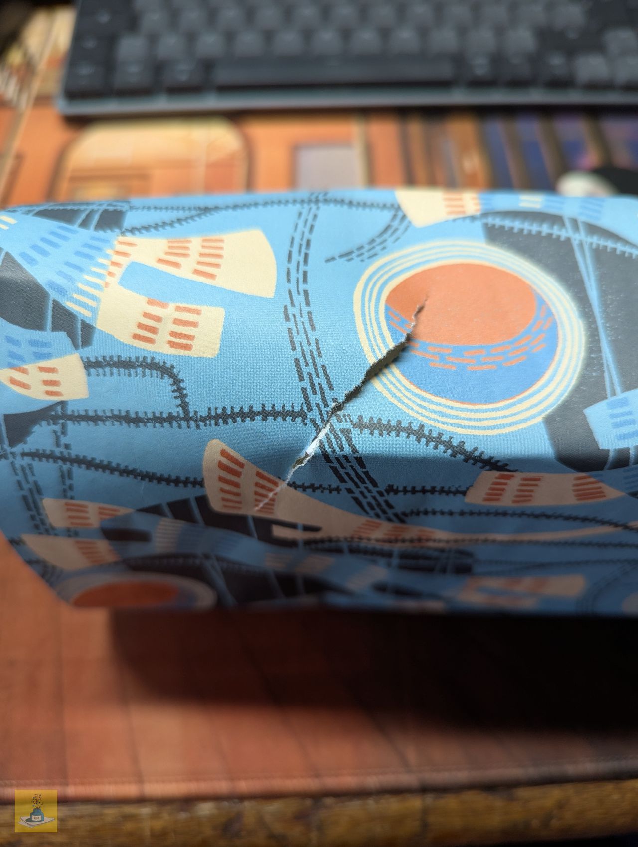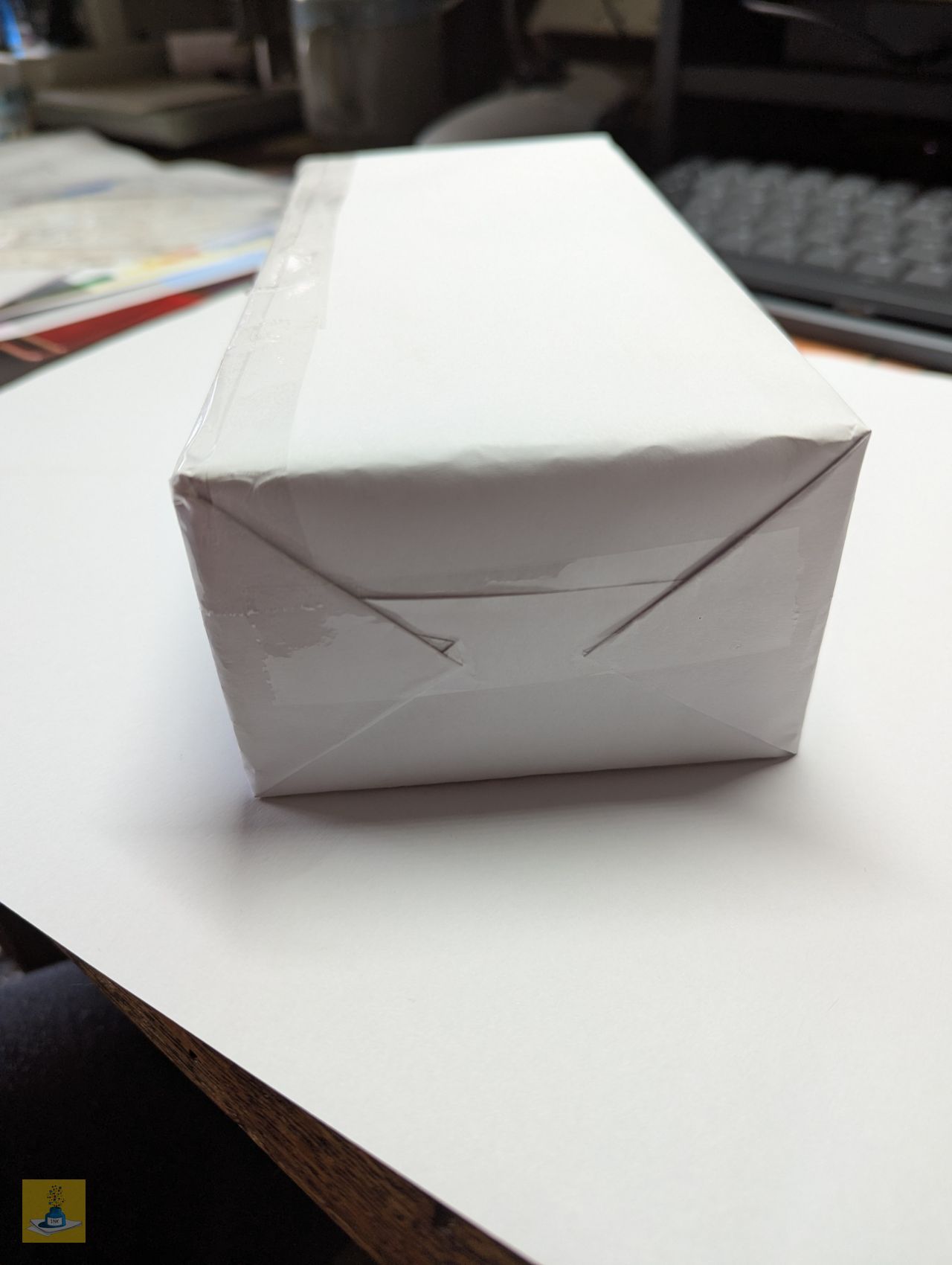 To ensure a secure finish and hopefully prevent any catching or tearing, I used plenty of tape on the ends. I did unfortunately encounter a small tear in the paper while wrapping and trying to tuck the ends in tightly, but a little bit of tape quickly resolved that issue.